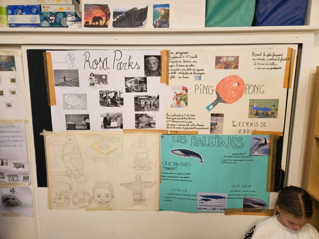 Dans notre classe, les élèves ont l’occasion de préparer un devoir libre : un moment où ils choisissent eux-mêmes le sujet et le support de leur présentation. Ils disposent de quelques semaines pour se préparer et viennent ensuite partager avec la classe un thème qui les passionne, scolaire ou extrascolaire. C’est une belle manière de laisser parler leur créativité, de découvrir des sujets variés et parfois même de faire des liens avec les apprentissages. Les enfants adorent ce moment d’échange : ils apprennent à prendre la parole en public, à gérer leur stress et à s’exprimer clairement en français… tout en s’amusant ! Un vrai temps de partage et de découverte : Voici quelques devoirs libres en 4e. Octobre 2025