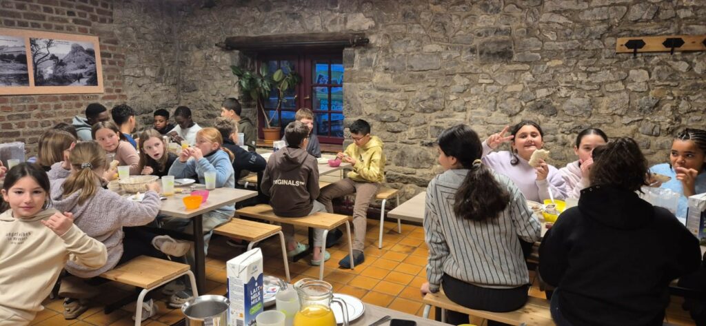 Cette année, les élèves de P1 et P2 sont partis à la ferme du Pré de la Garde ! Ils étaient ravis de s’occuper des animaux, de fabriquer du pain et du fromage, de travailler la laine des moutons, mais aussi de partager des moments de vie : manger, dormir et rire avec les copains. En cinq jours, ils se sont transformés en véritables apprentis fermiers et fermières, et sont revenus à Bruxelles la tête remplie de super souvenirs.