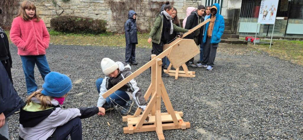 Une semaine médiévale au domaine de Palogne pour les P5/P6. Les élèves ont vécu une semaine de classes vertes au domaine de Palogne, autour du thème du Moyen Âge. Ils ont découvert la vie médiévale en construisant et testant un trébuchet, en visitant un musée et le château de Lognes. Des activités en pleine nature leur ont également permis d’apprendre à survivre en forêt : construction d’abris, orientation avec carte et boussole, et découverte de techniques de base. Une semaine riche en découvertes, vécue dans une ambiance conviviale, que les enfants ont adorée.